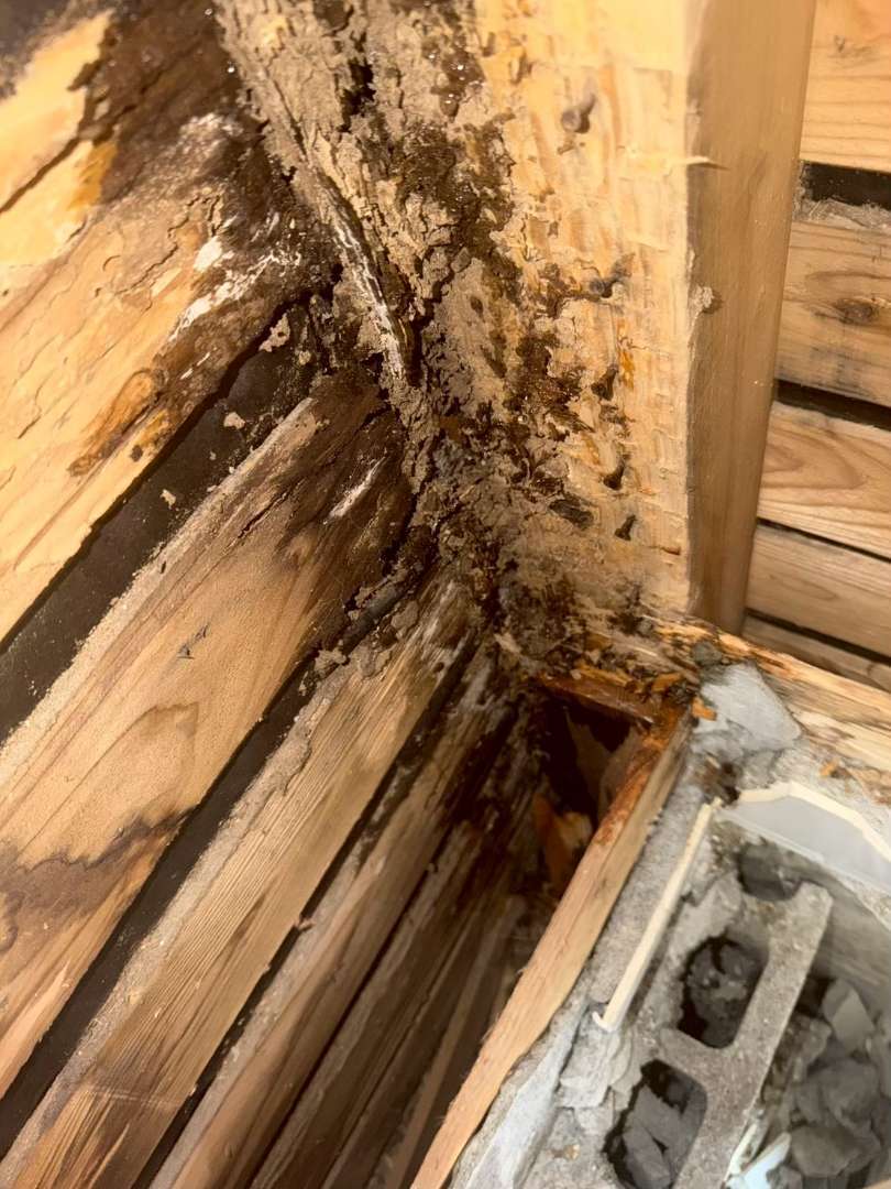 黒く変色し、もろくなってしまった木材。こうした状態を放置しておくと、耐震性が下がるだけでなく、シロアリを呼び寄せる原因にもなってしまいます。