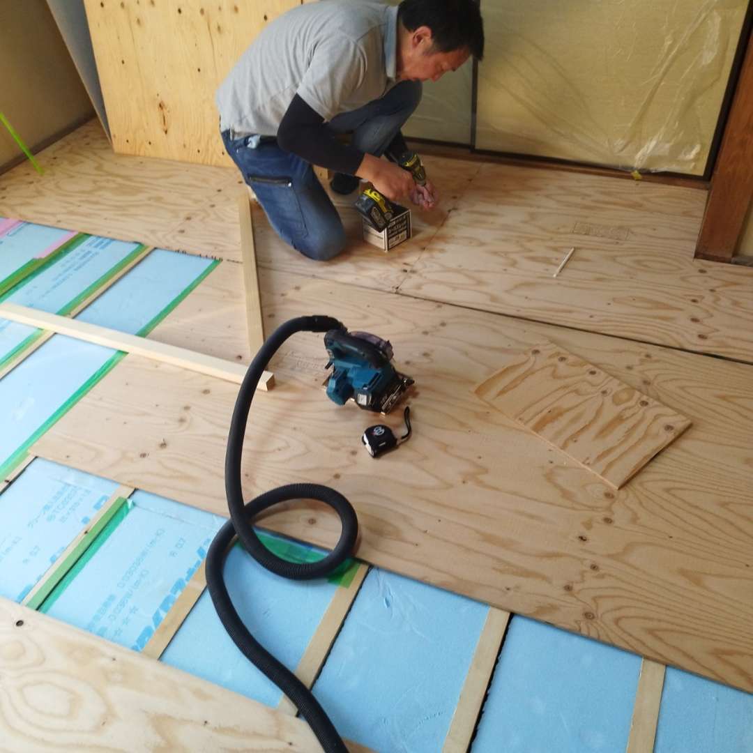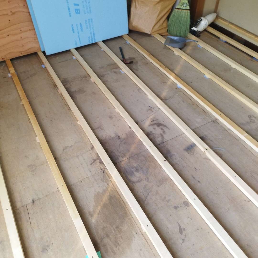 そしてその隙間にスタイロフォームを埋め尽くすのですが、とにかくこれで床が暖かい。