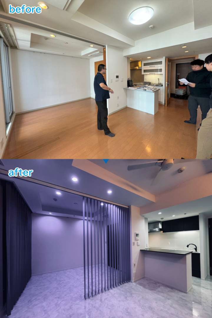 さて!今回は、株式会社グランリファインが手がけた「フローリング」を人工大理石に変更するリフォームの施工事例をご紹介します。このリフォームで、お部屋全体の印象が劇的に変わり、まるで高級ホテルのような空間に仕上がりました~