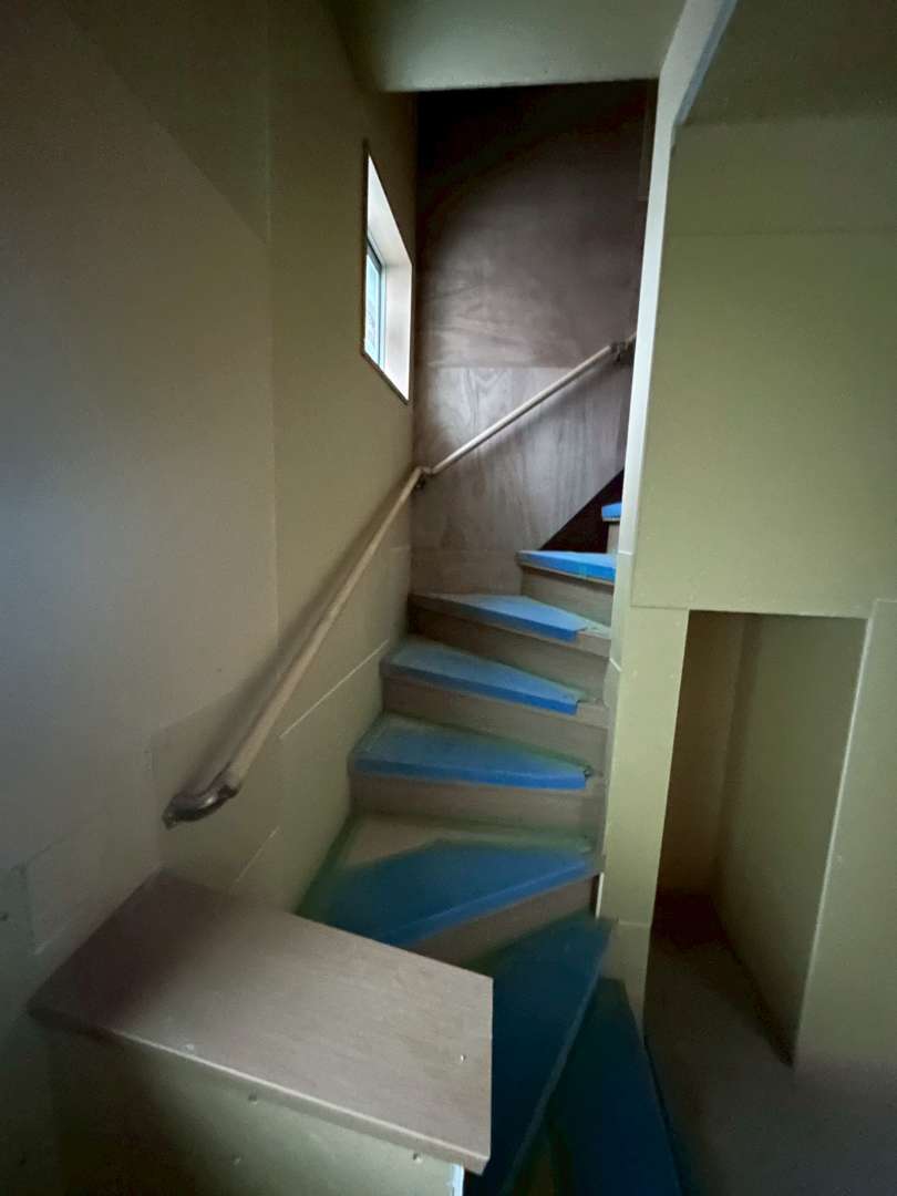 階段の架け替えや、断熱材の充填を行い、住まいの基本性能を底上げしていきます。写真からも分かるように、暗かった室内が整理され、新しい空間の広がりが見えてくるこの時期は、施主様にとっても一番ワクワクする瞬間かもしれません。