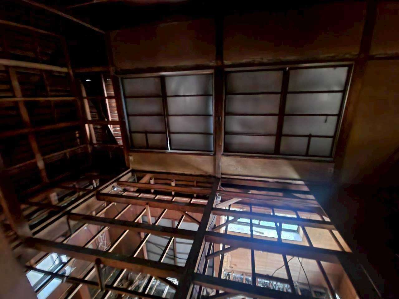 写真にある通り、壁や床をすべて取り払うと、お家を支える柱や梁が姿を現します。この段階は、実はお家にとって最も大切な「健康診断」のタイミング。長年の湿気によるダメージや、シロアリの被害、土台の腐食がないかをプロの目で一節ずつ確認します。
