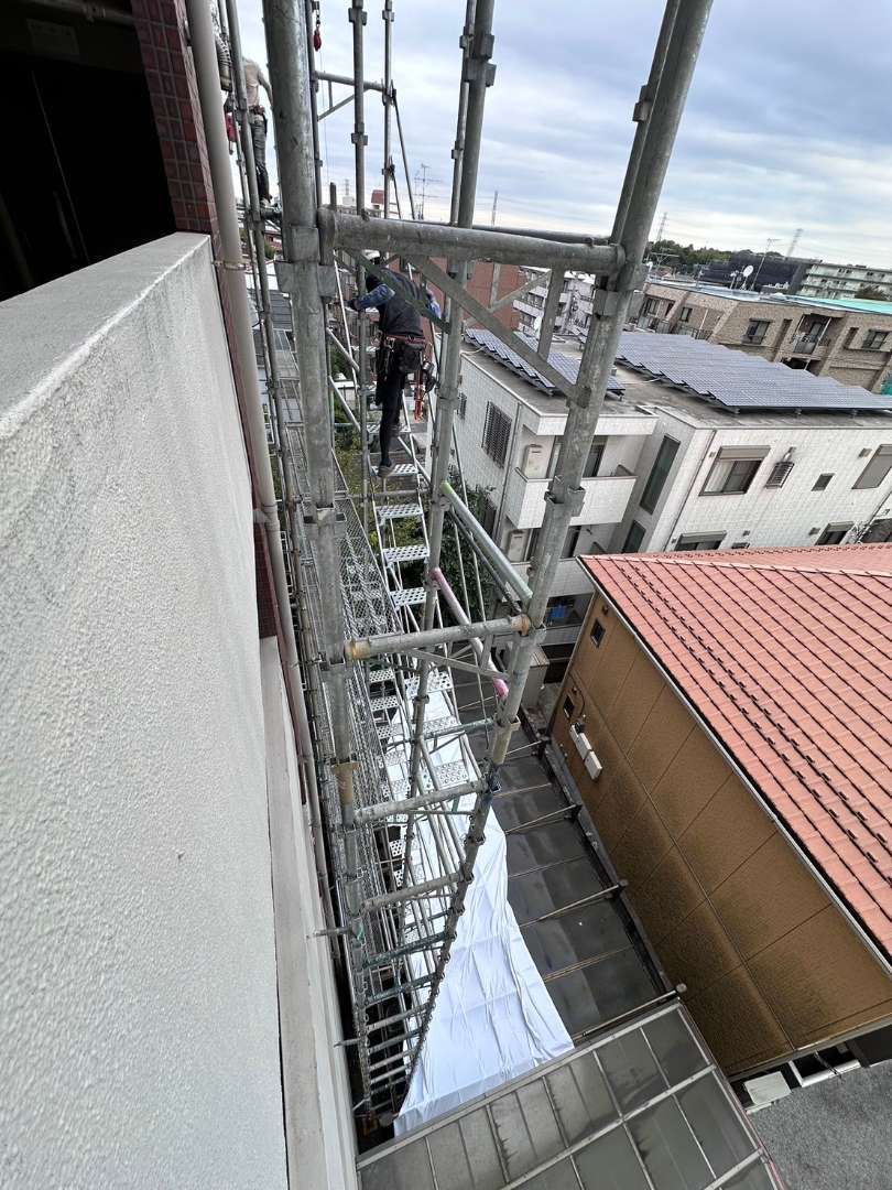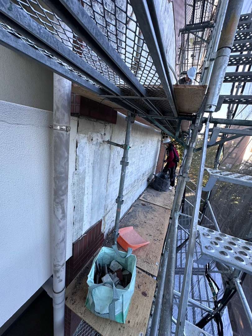 今回崩落したのはこのザラザラの下地に貼ってあったタイル。