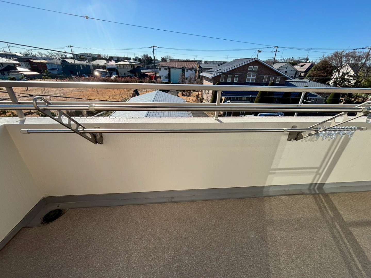 ピカピカの新しい物干し金物が設置されました! 今回は、お客様の身長や、干す洗濯物の長さに合わせて最適な高さに調整。以前よりもスムーズに竿を通せるようになり、毎日の「干す・取り込む」という動作が劇的に楽になりました。