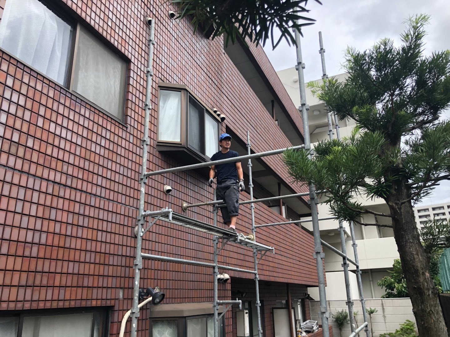 とりあえず高所作業になりますので足場を組みます。