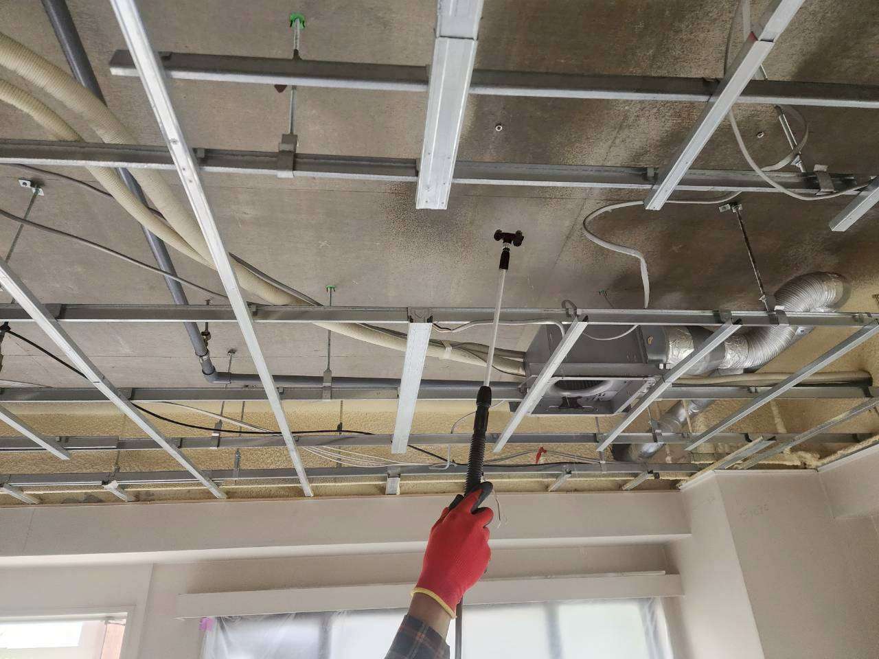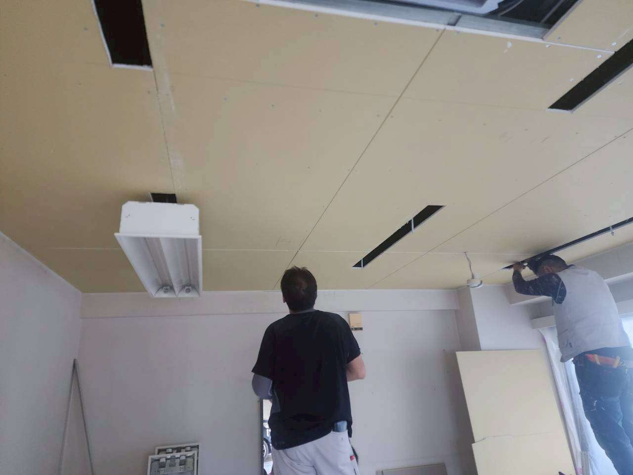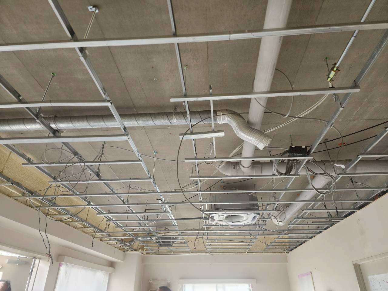 散布が終わったら天井の下地を貼っていきます。