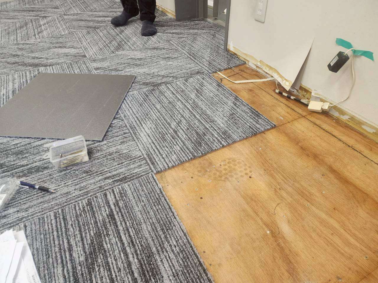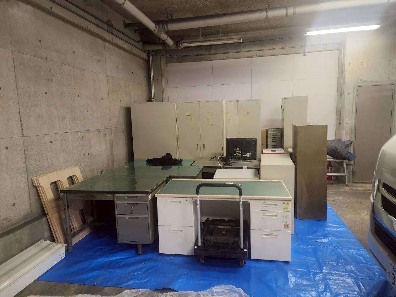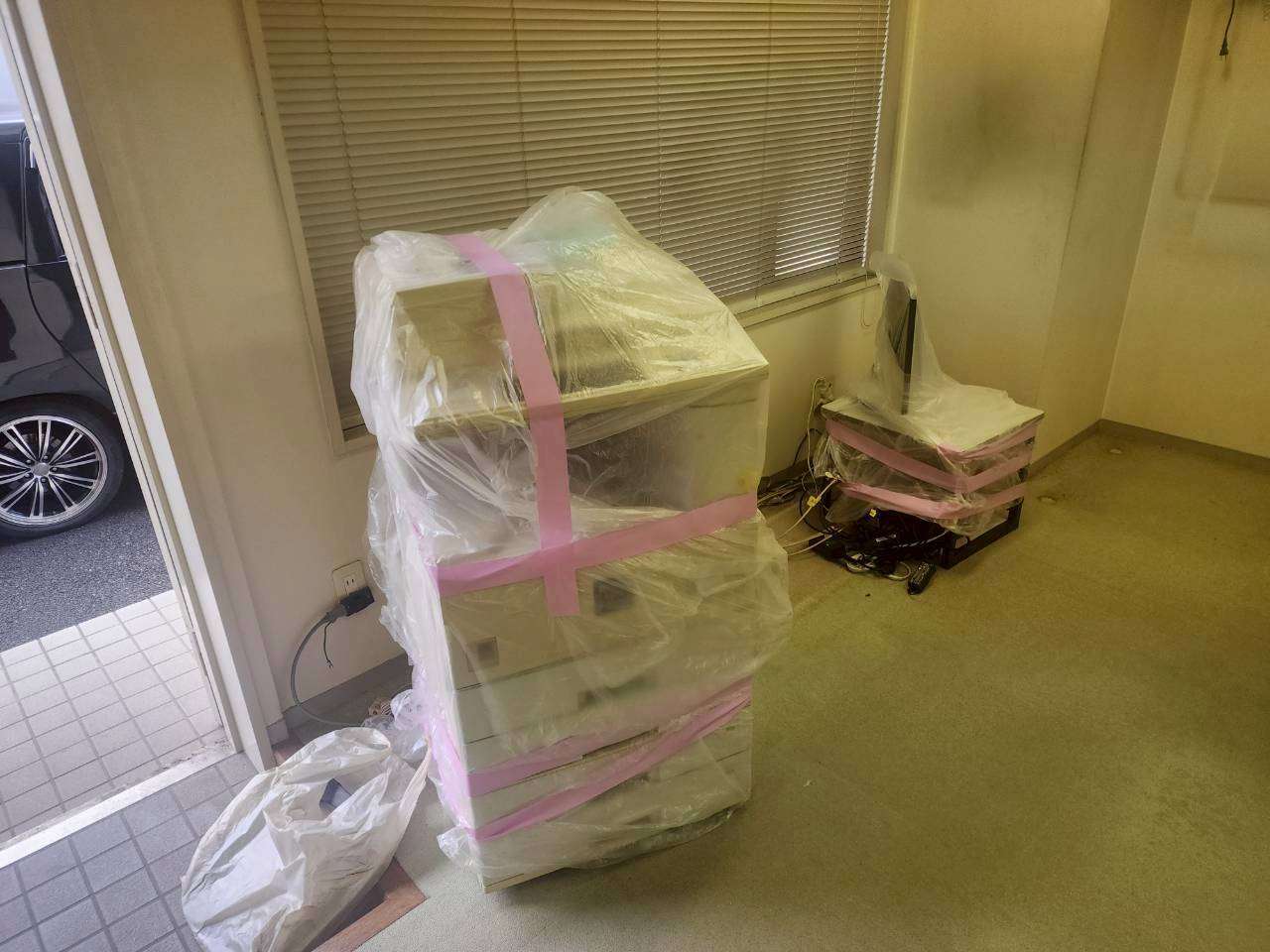 まずは事務所内にあるものを移動して養生から。